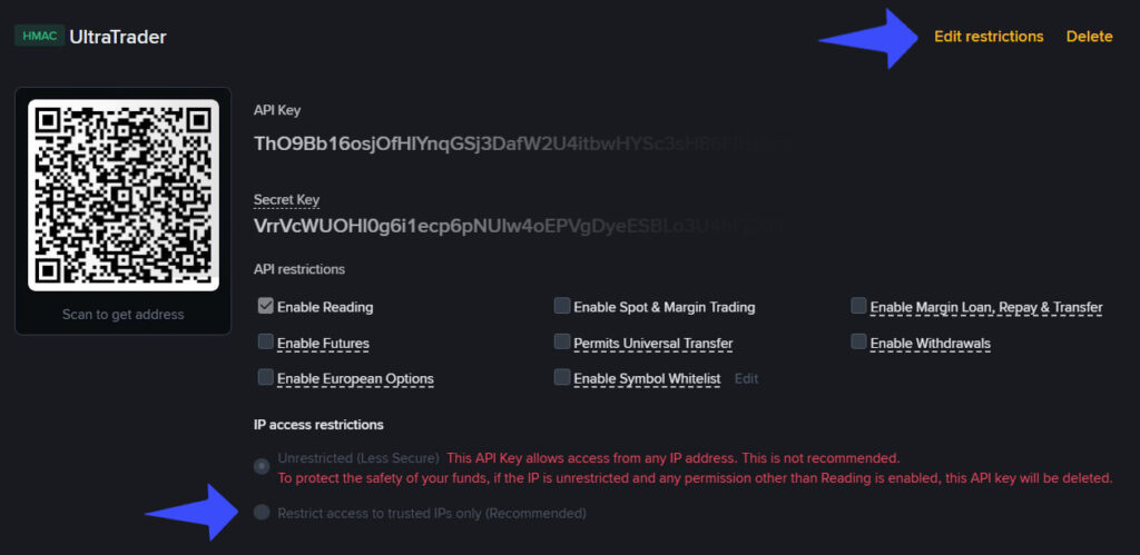 Now click the copy button next to API key and Secret key. You will need to paste these inside UltraTrader shortly.