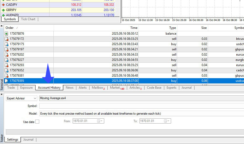 Step 3: Open MetaTrader (4 or 5) and log in to the account you want to import trades from. Then, select History (MT5) or Account History (MT4).