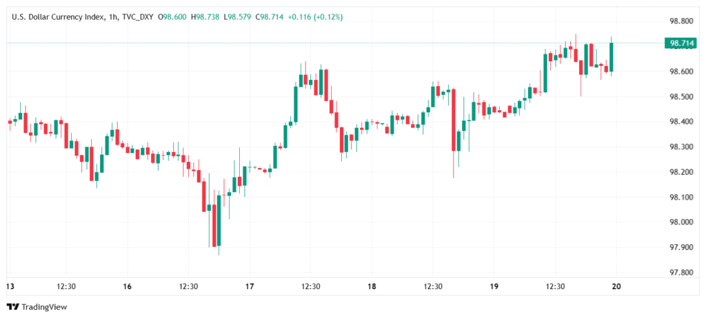 - Current range: DXY spent most of the week in 97.5–98.7, a classic sideways consolidation within the larger downtrend.