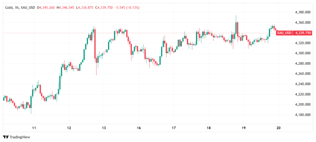 - Current price action: Oscillating between 4,305–4,355 all week, typical of overbought consolidation.