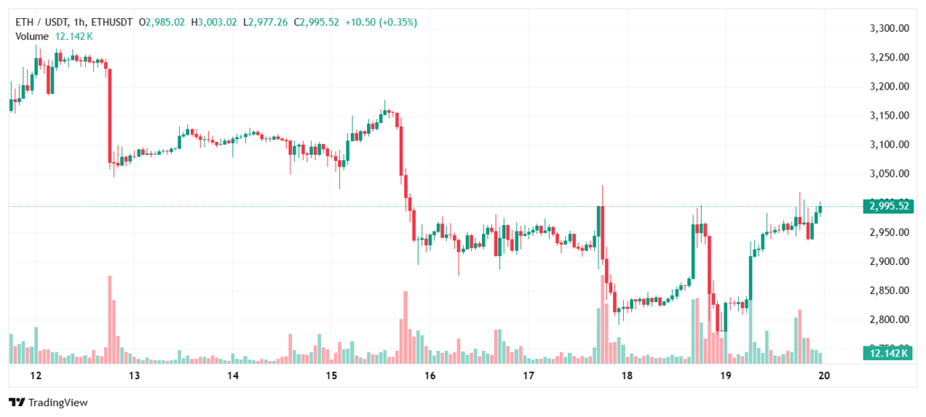 - Breakout plan: A daily close above $3,050 with volume would target $3,300–$3,400 and validate bullish setups. Conversely, sustained closes below $2,950 warn of a drop toward $2,700–$2,800.