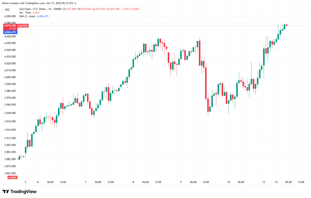 Gold continued its strong momentum this week, pushing into uncharted territory. The metal decisively broke above $3,900, at one point brushing $4,000, as global uncertainty and growing bets on U.S. rate cuts drove demand. The breakout felt not just technical, but psychological: crossing the $4,000 barrier added fresh conviction to the bullish thesis.